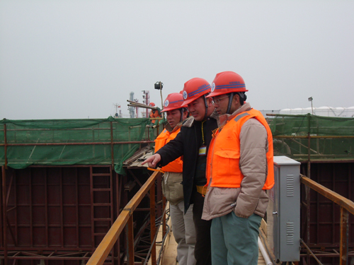 春節(jié)期間,四航局董事長(zhǎng)梁卓仁在三公司副總經(jīng)理秦慶生的陪同下,冒著陣陣寒風(fēng)來(lái)到了欽州中石油10萬(wàn)噸級(jí)碼頭工地,親切慰問(wèn)春節(jié)期間堅(jiān)守在工地施工的所有員工。梁董事長(zhǎng)還登上"防城港"號(hào)浮船塢及粵工拖"41"號(hào)等船組,拜訪業(yè)主并與業(yè)主領(lǐng)導(dǎo)進(jìn)行了親切地交談。