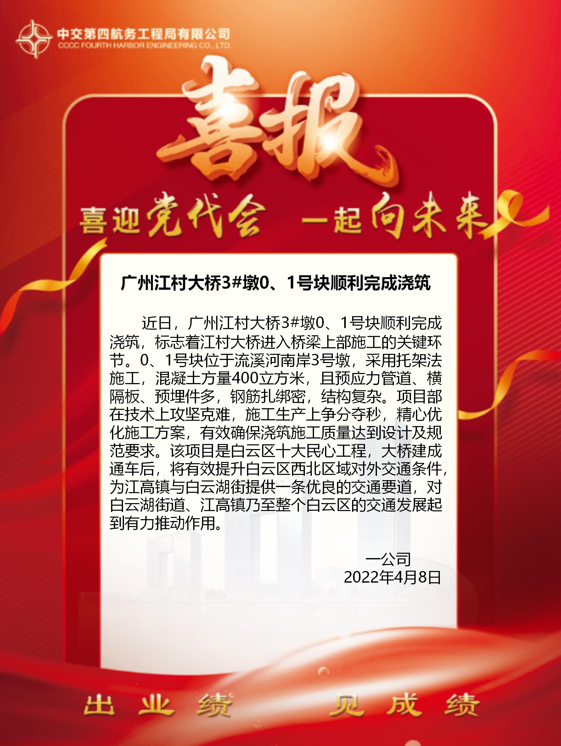 廣州江村大橋3#墩0、1號塊順利完成澆筑