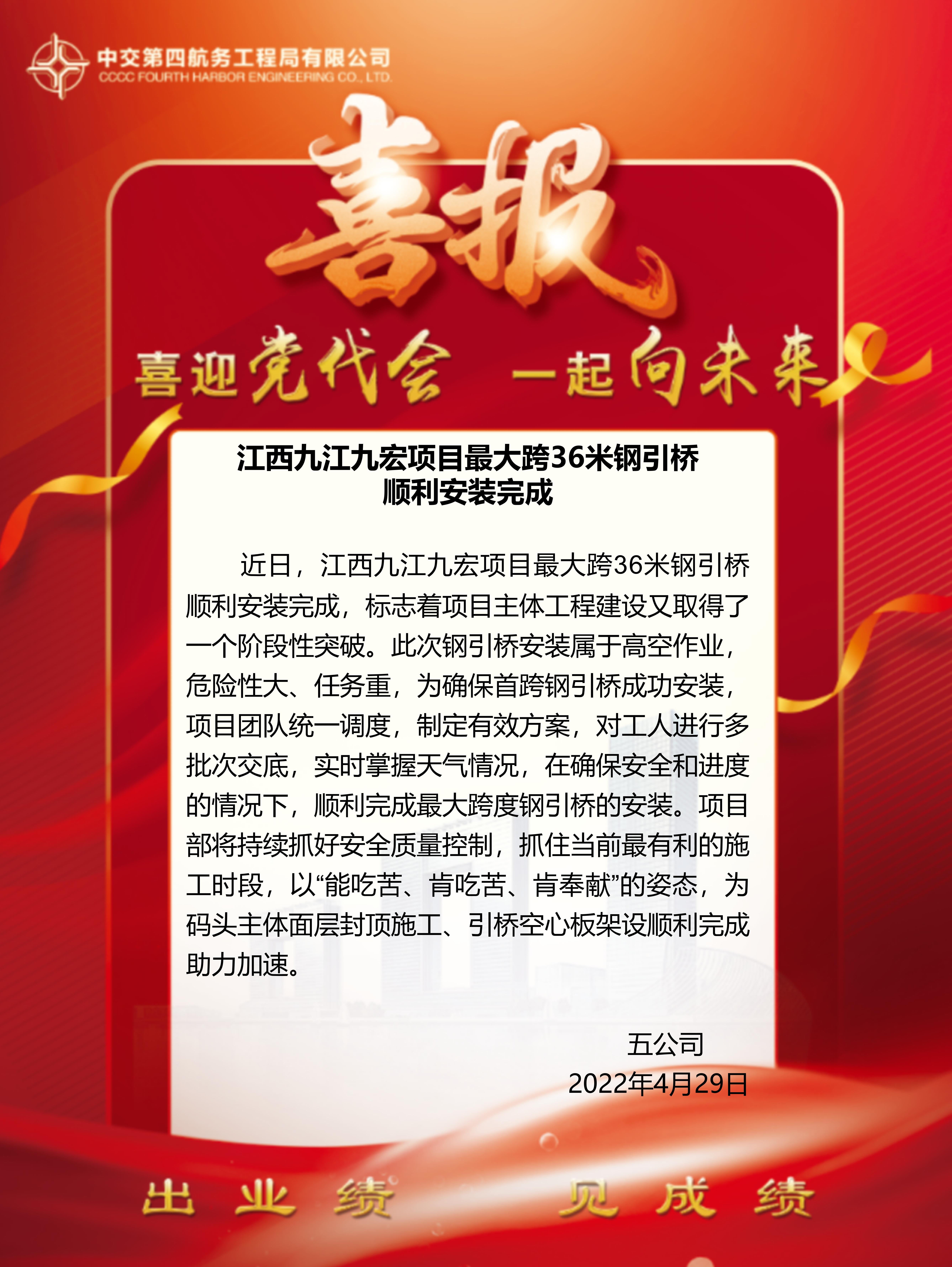 江西九江九宏項(xiàng)目最大跨36米鋼引橋順利安裝完成