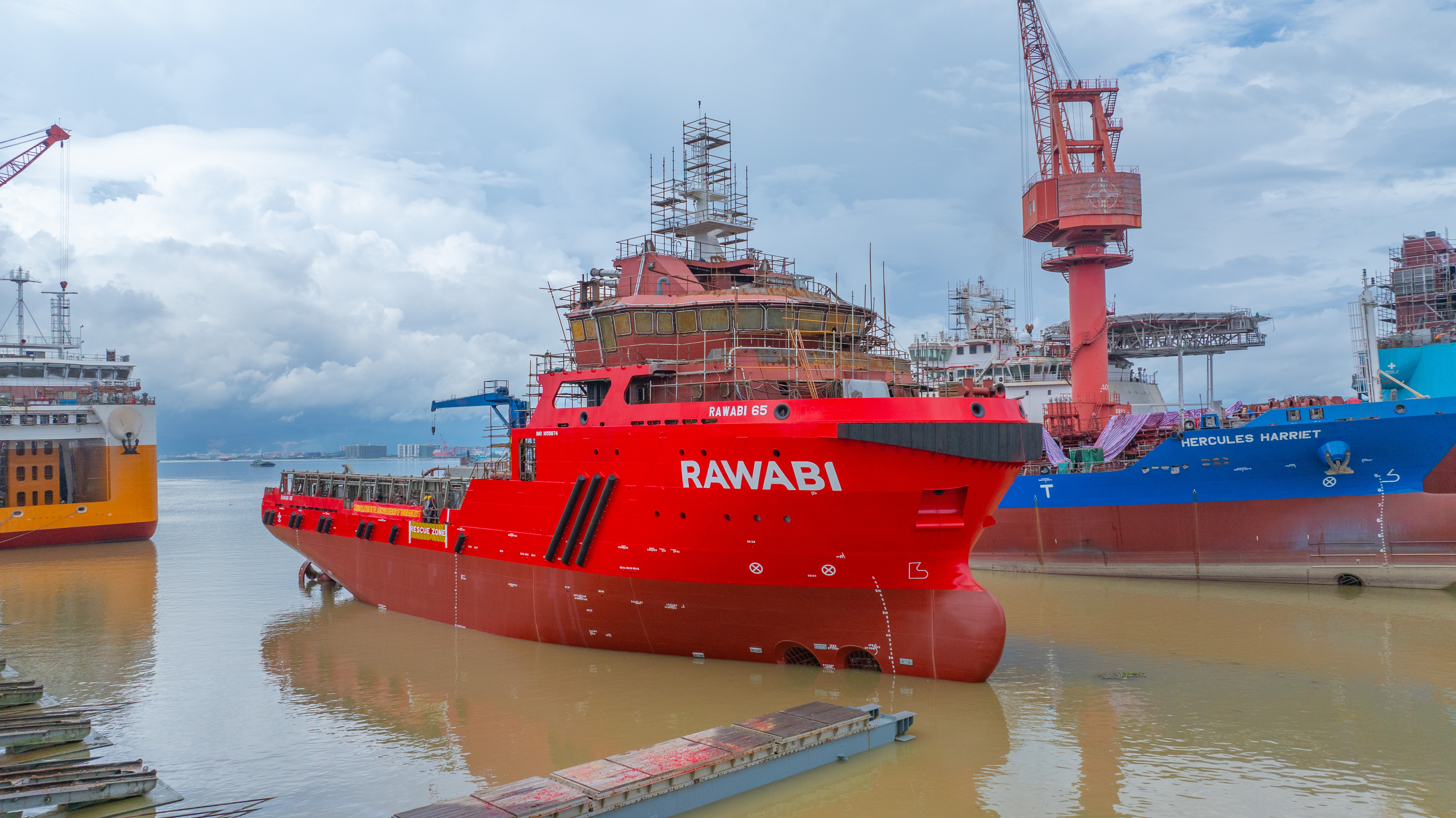 近日,四航局建造的65米三用工作船“RAWABI 65”輪順利下水。