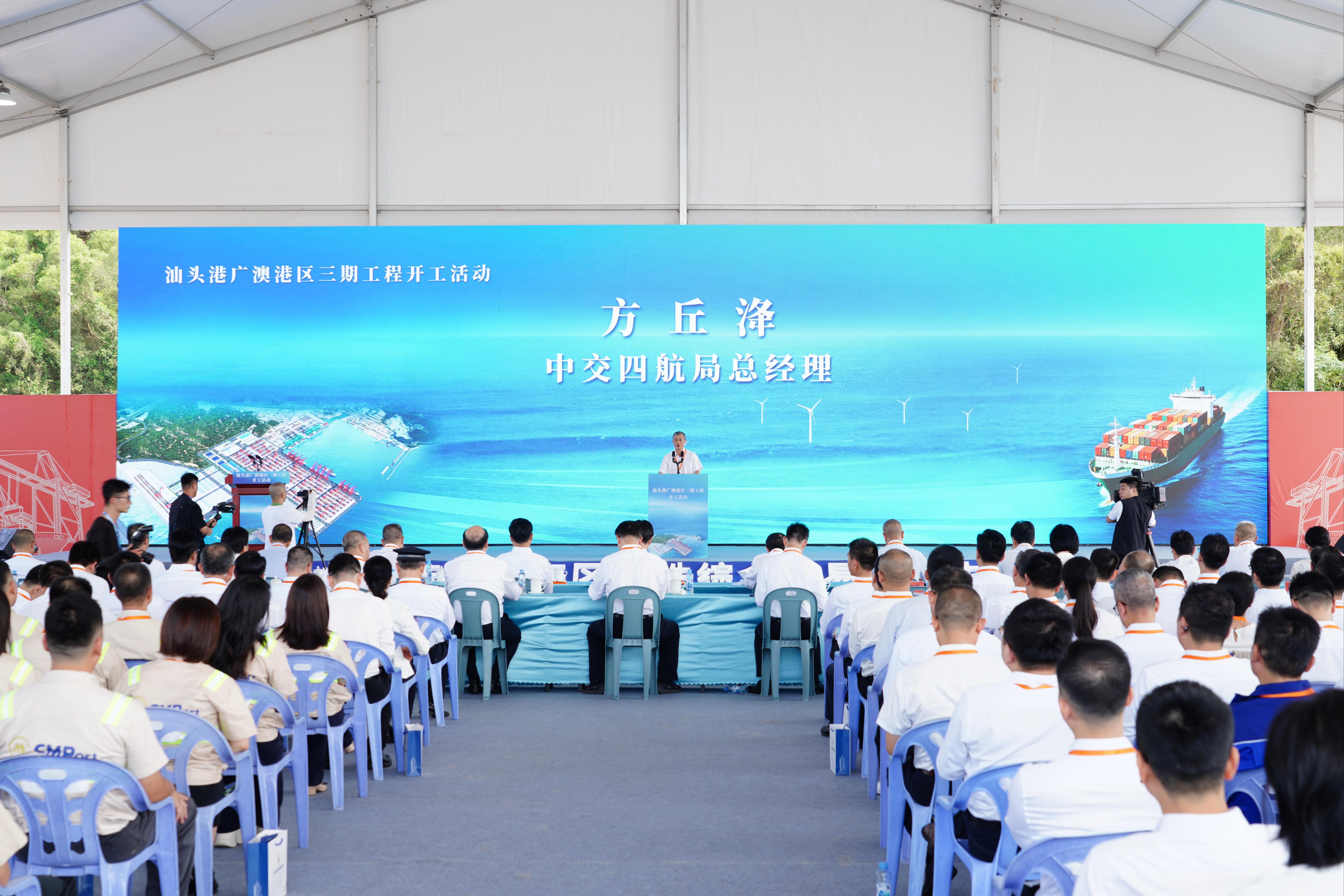 方丘洚代表四航局作為廣澳三期碼頭項目施工單位致辭。他表示,四航局將堅持高站位抓好項目實施,充分發(fā)揮在港航領(lǐng)域的獨特優(yōu)勢,以科技創(chuàng)新為引領(lǐng),以綠色智能為導(dǎo)向,周密策劃、科學(xué)管理、精心施工,全力打造優(yōu)質(zhì)工程、綠色工程、平安工程、廉潔工程,為汕頭建設(shè)現(xiàn)代化活力經(jīng)濟特區(qū)、為廣東省打造新發(fā)展格局戰(zhàn)略支點作出新的更大貢獻。