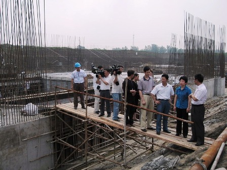 黃莉新對該工程船閘3#底板進(jìn)行了現(xiàn)場檢查,并詳細(xì)了解該工程施工進(jìn)度、質(zhì)量安全等方面情況,同時對奮戰(zhàn)在烈日下的四航工程建設(shè)者表示慰問。